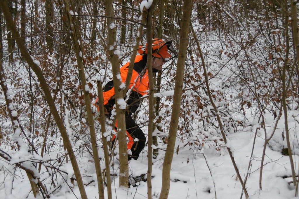 Die nächsten beiden Tage verbrachten wir im Wald, wo wir unter Aufsicht unserer Ausbilder große Buchen fachgerecht „Anschlagen“ und vom Gebäude weg Fällen mussten.