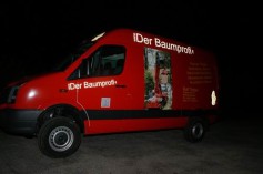 Das gesamte Fahrzeug wurde zum Schluss komplett mit Folie in unserer Firmenfarbe überzogen und mit unserer neuen Werbung beschriftet.